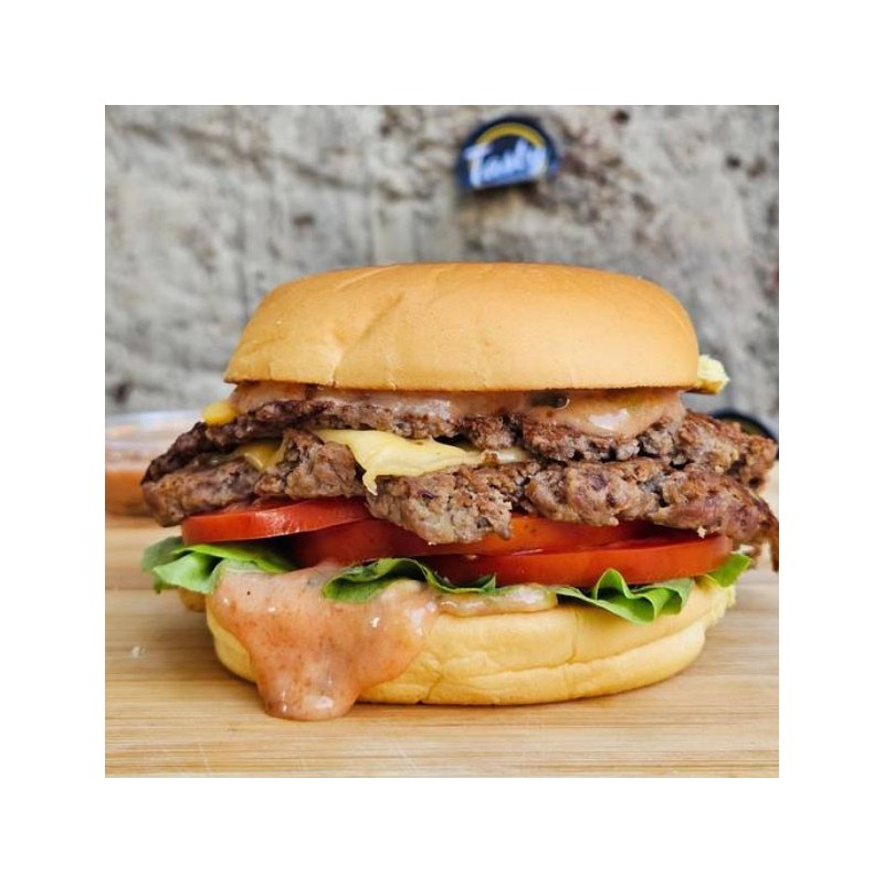210 gr smash burger, 58 gr de Proteína, 541 kcal. , doble queso cheddar reducido en cal, lechuga, tomate, salsa tasty protein light, pan de papa. (58 gr Pr - 37,4 gr Carb - 17,7 gr Gr - 541 kcal).